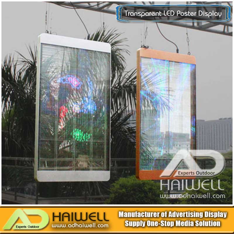 Também chamado de pôster digital LED transparente que resolve o anúncio de uma variedade de cadeias de lojas de varejo.